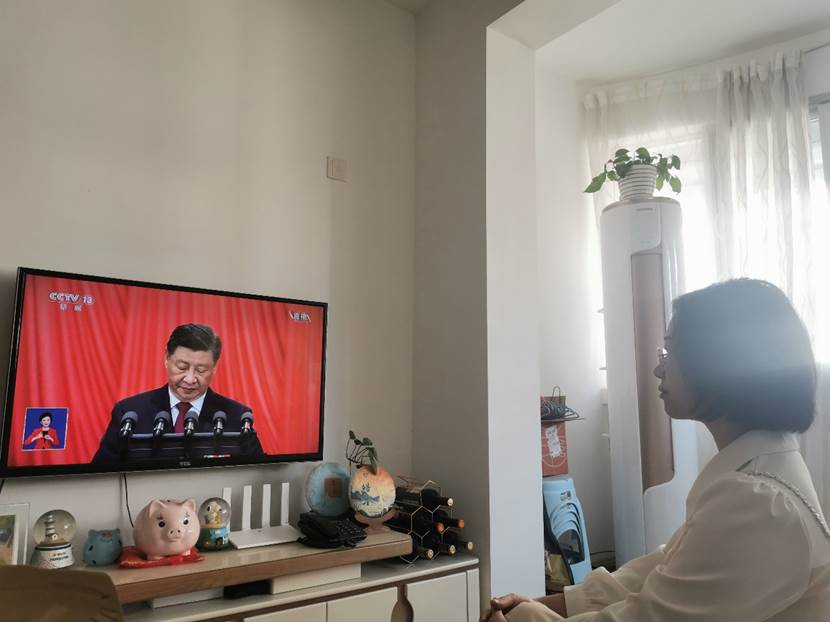入党积极分子杨洁兰收看党的二十大开幕会