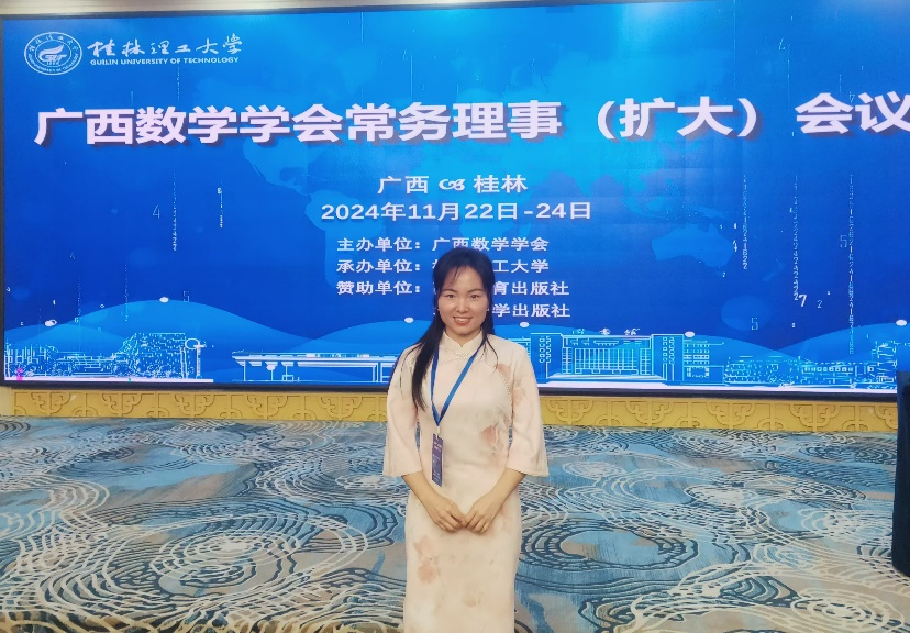 2024年11月22日至24日,由广西数学学会主办的“2024年广西数学学会常务理事(扩大)会议”在桂林理工大学顺利召开。pp电子数学教研部韦爱举老师参加了此次会议。