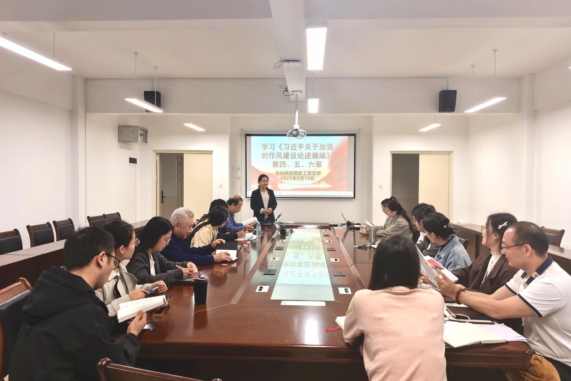基础教研部教工党支部开展《习近平关于加强党的作风建设论述摘编》第七、八、九章专题学习会