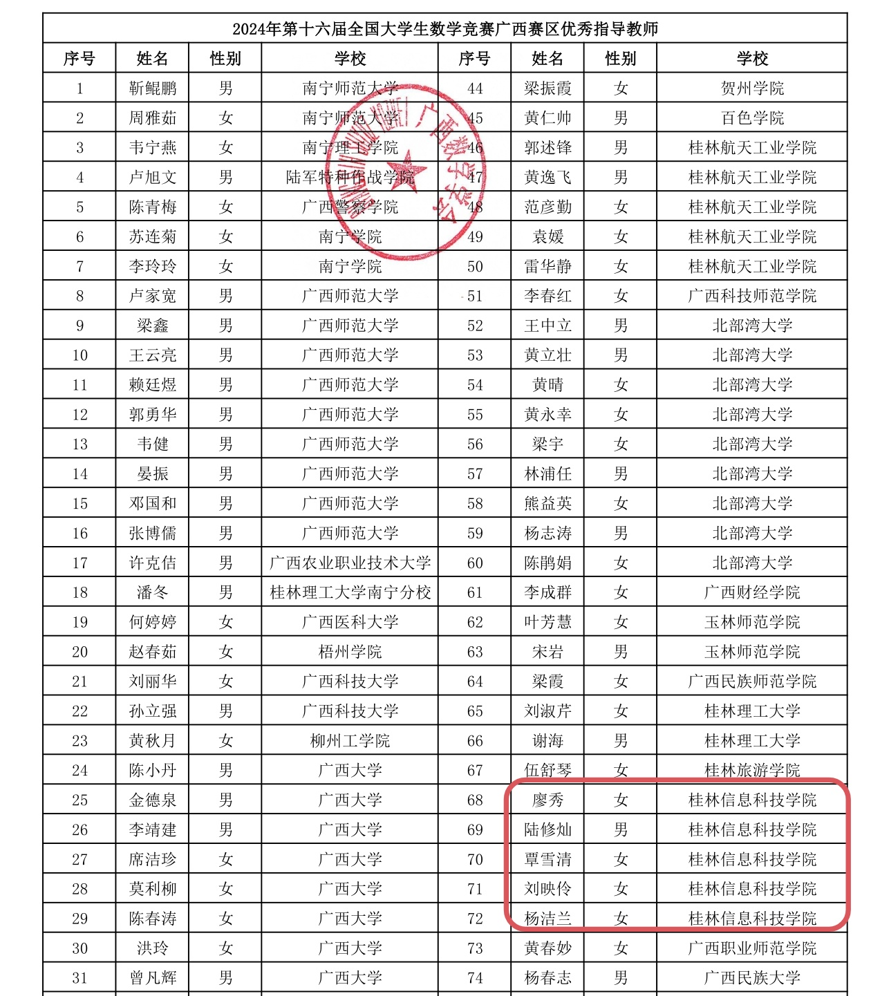 近日,2024年第十六届全国大学生数学竞赛初赛(广西赛区)获奖名单正式公布,pp电子学子荣获非数学类专业组一等奖36项,二等奖33项、三等奖52项,数学教研部教师获得广西赛区“优秀指导老师”5名。
