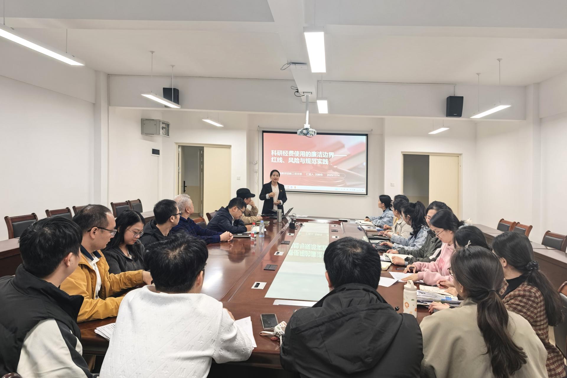 为深入推进党风廉政建设,引导广大教师在科研工作中坚守学术诚信、涵养高尚师德,11月14日下午,基础教研部教工党支部在汇通楼H504会议室开展了一场融合廉政教育、生命教育、科学教育与红色教育的专题学习会。会议由基础教研部教工党支部书记刘映伶主持,支部全体党员参会。