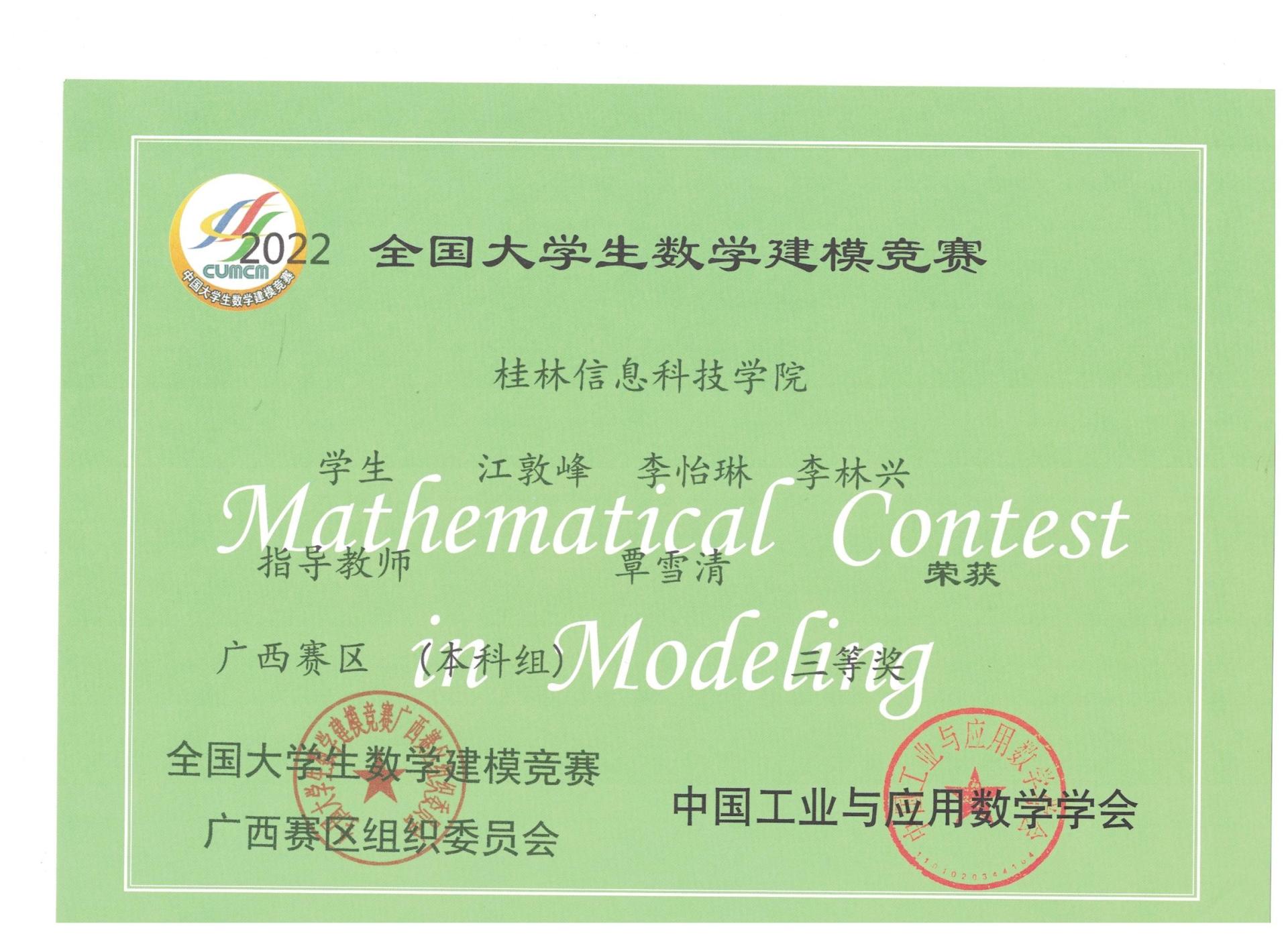 下一条:2021年全国大学生数学建模竞赛获奖