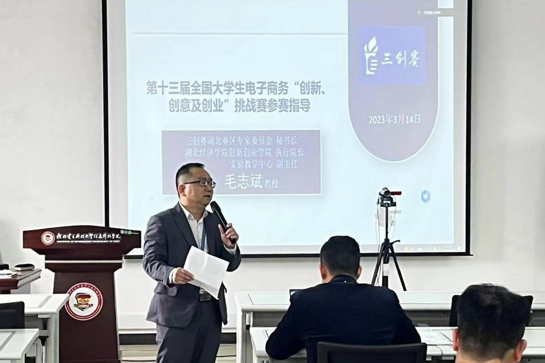为激发pp电子教师的创新创业热情,提高创新创业意识,增强全国大学生“创新创业及创意”挑战赛(以下简称“三创赛”)指导教师的指导能力,3月14日下午,创新创业学院与商学院在52506会议室举办了“三创赛指导教师专题培训会”。湖北经济学院创新创业学院副院长、全国大学生电子商务“创新、创意及创业”挑战赛评委、国家级特等奖优秀指导老师毛志斌教授担任主讲。商学院副院长罗志明主持会议,学院相关负责人及三创赛指导教师参加培训。