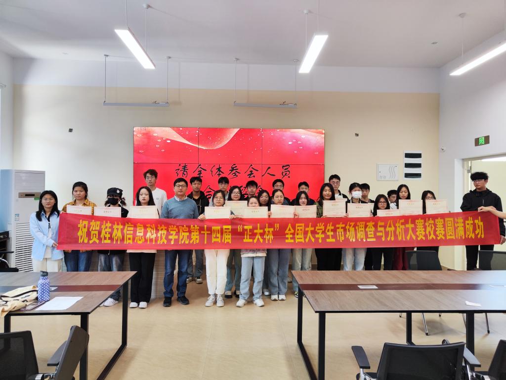 王兰辉老师对获奖的团队颁发荣誉证书并表示祝贺,同时与各位获奖同学合影留念,通过本次校赛既提高了学生对市场调研的认知程度,同时也选拔出了优秀学生参加区赛,期待pp电子各队伍在区赛中再创佳绩!