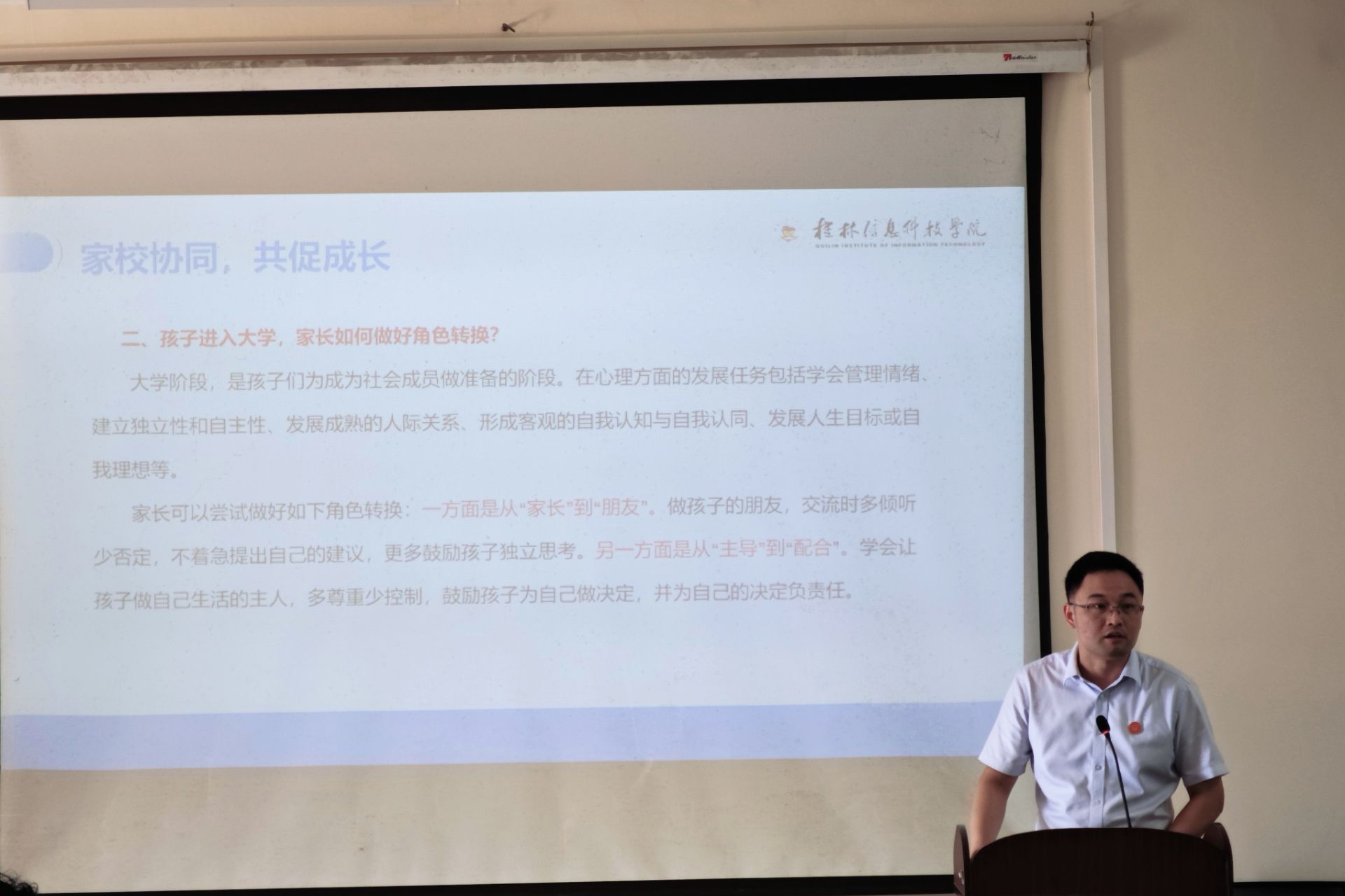 会议内容围绕商学院的发展历程、特色专业、师资力量和就业前景等家长们关心的主题展开,周洁院长向新生及家长们致以诚挚的欢迎并介绍了学院的基本情况。罗志明副院长特别讲解了学院的“专业协会+学科竞赛”双螺旋驱动人才培养机制及其成效,沈洋副院长介绍了商学院的七大优质专业及其就业前景展望,张振华助理则全面深入地讲解了学院的产教融合和校企合作情况,学校创新创业学院院长王冲教授介绍了学校的创新创业教育情况及发展方向,许奇书记阐述并强调了家校共育的重要性,指出双方携手合作对于促进学生健康成长的不可或缺性。