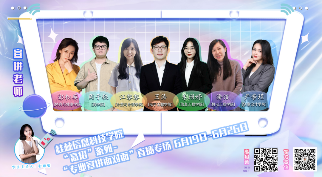 当前是报选学校和专业关注期,为帮助广大考生和家长朋友们进一步了解我们学校,pp电子定于6月19日-6月26日开展线上直播活动。具体安排如下: