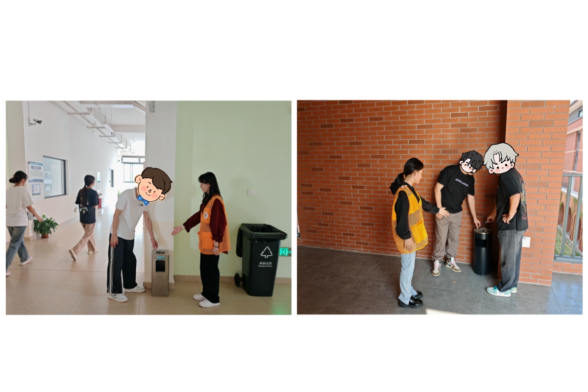 为深入开展大学生文明素养与日常行为规范养成教育,营造健康的学习生活环境,自2024年11月起,商学院党委组织学生党员在博文楼、敏思楼设立课间禁烟执勤岗,充分发挥党员先锋模范作用,通过巡逻和宣传的方式,劝阻和制止吸烟行为。
