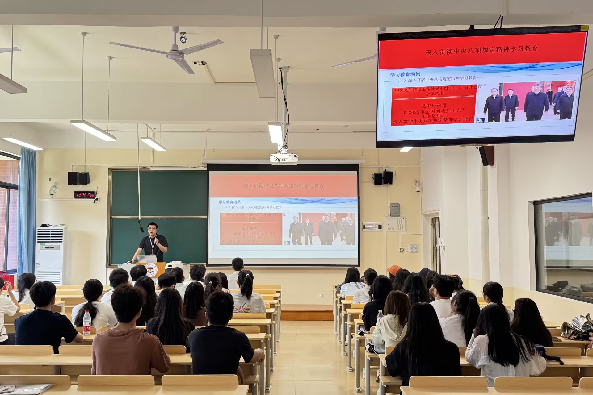 为推动党的创新理论深入人心,并提升党员的政治素养,商学院在6月12日-13日组织开展2025年党的创新理论进基层宣讲活动。本次活动邀请到马克思主义学院6名专任教师作为主讲人,分别为各支部党员授课。