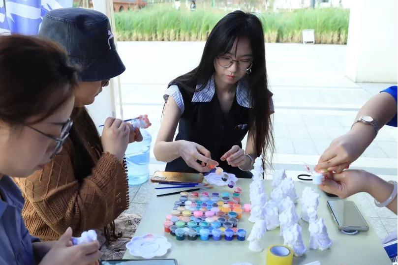 活动以民族趣味运动、民族文化问答、手工艺体验等形式展开,融合壮族簪花、服饰特色,沉浸式感受壮族文化。活动现场热闹非凡,猜灯谜、制作壮族簪花、投壶套圈等活动让同学们沉浸其中。随后,同学们身着绚丽多彩的壮族服饰,带来了精彩的歌舞节目,展现了“三月三”的独特魅力,生动诠释“各美其美,美美与共”的文化理念。