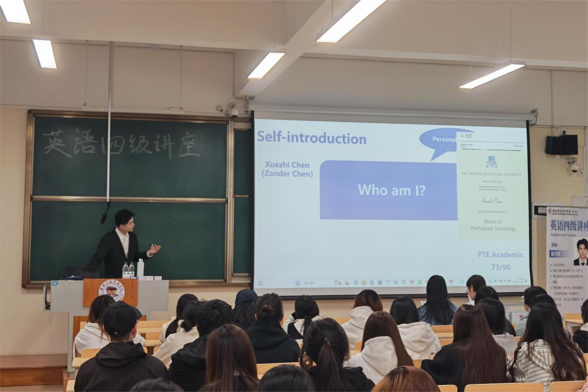 为提升学生英语四级考试备考成效,11月11日,商学院特邀专任教师陈学致在敏思楼D208教室举办专场备考讲座,近百名学生参与活动。