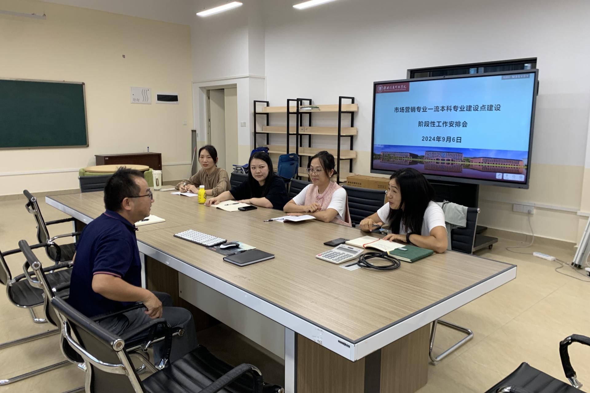024年9月6日,市场营销专业举行了一流专业建设阶段性工作安排会。由市场营销专业学科带头人罗志明副院长亲自主持,市场营销全体专任教师齐聚一堂,共同交流探讨。会上,罗副院长首先回顾了专业建设的既有成果,并明确了下一阶段的工作重点与任务。他强调,学生培养是核心,学科竞赛是驱动,研究成果是支撑,校际交流是拓展,优秀课程建设则是基石,这些方面需齐头并进,共同推动市场营销专业向一流目标迈进。