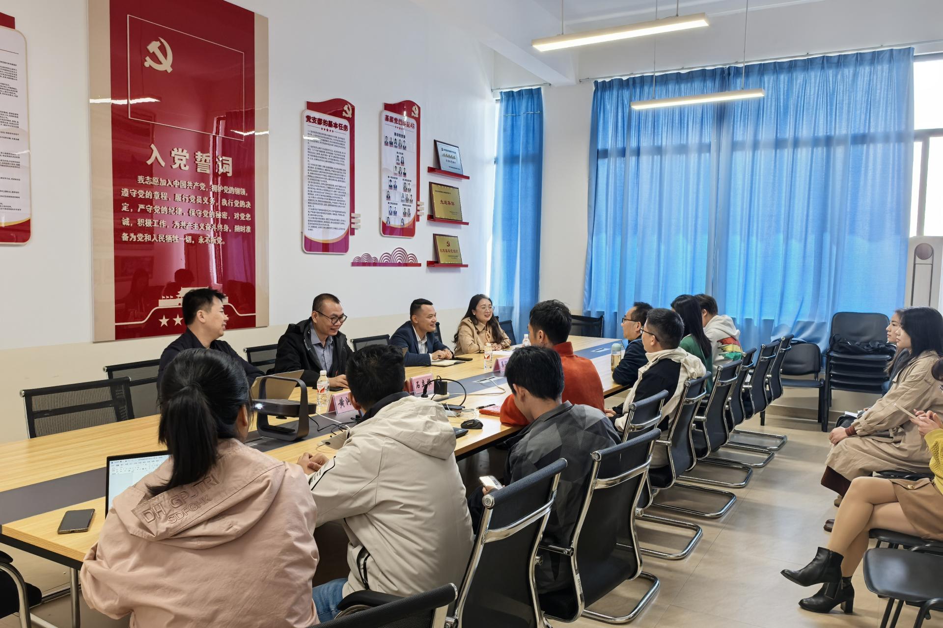 在会谈中,罗副院长强调了学院将从专业建设、教师发展、学生成长等多个维度,全面推进学科建设。金融科技教研室教研主任陈龙介绍了商学院金融科技教研室的基本情况,以及作为新筹办的金融科技专业正在积极完善师资队伍,做好将专业知识与实践相结合。新道公司的代表们分享了公司的历史历程以及他们在金融科技专业建设上的探索经验,如何将产业端的需求转化为教学内容。在讨论中,双方就金融科技专业的申报、学校后续建设定位、以及如何围绕金融+科技专业建设进行了深入交流。最后,双方就可能的项目合作、教材更新、企业大赛等多个方面进行了初步的沟通,并计划在未来进一步深化合作,共同推动pp电子金融科技教育的发展。