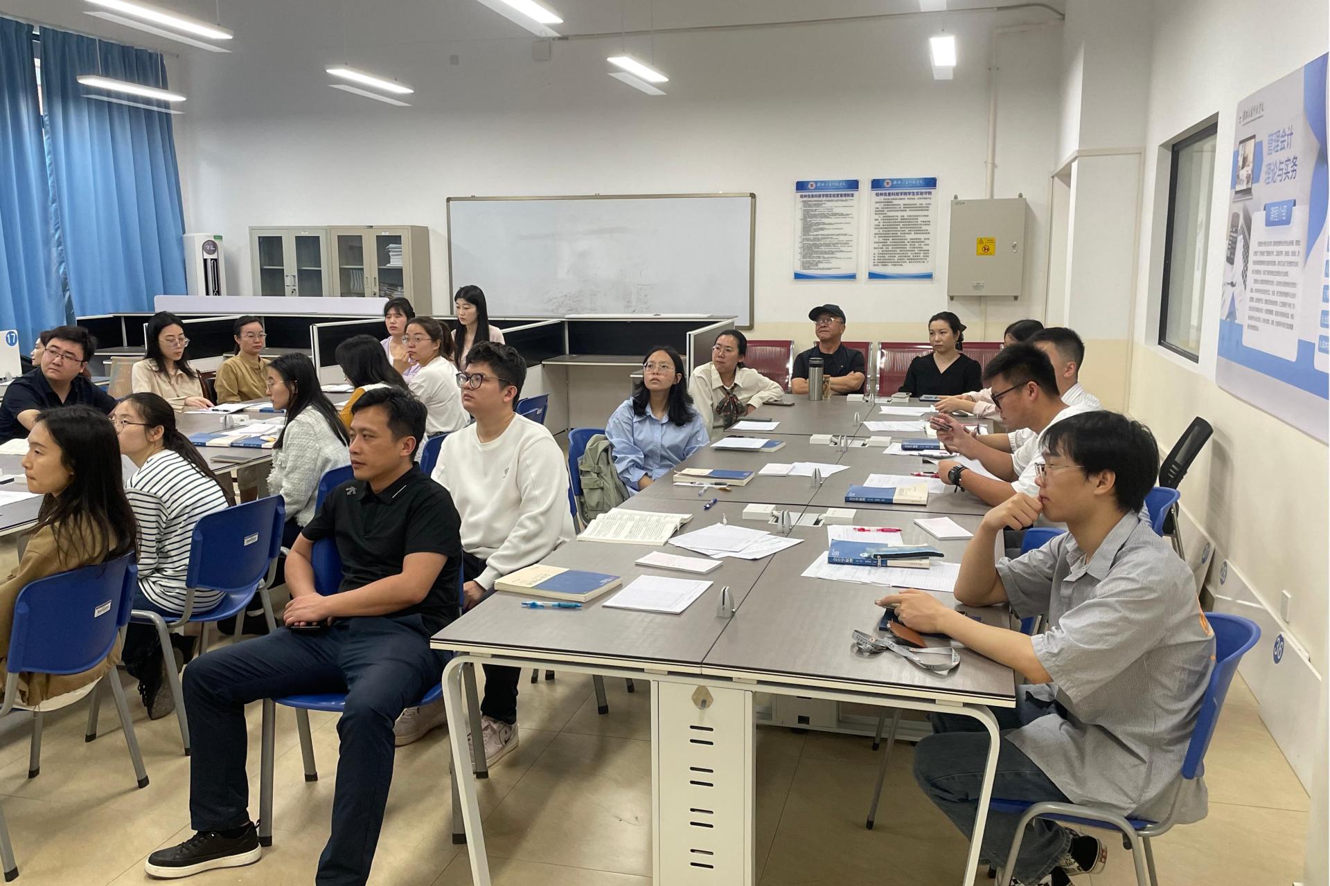 会议重点分享了几个教学创新的优秀案例:1、课程与思政教育的深度融合:赵静在《税法与纳税筹划》课程中,以“校园文创社增值税申报”为情景案例,引导学生分析小微企业税收优惠对乡村振兴的推动作用。数据显示,85%的学生能够清晰地阐述政策与社会责任之间的联系,并主动调研地方企业的税收实践。2、OBE(Outcome-Based Education)理念的精准实施:许慧馨在《会计学》课程中,采用了“案例教学+随堂练习”的双轨制教学方法。例如,通过“某制造企业设备报废争议”的案例,引导学生辨析“资产特征”与“确认条件”,实时评估学生的知识掌握情况,课后测验显示学生在识别会计要素方面具有较高的准确率。3、技术赋能课堂革新:刘欣悦在智能化课程中引入了移动端实时互动功能,通过学习通平台与学生进行实时互动,有效激发了后排学生的积极性,显著提高了课堂参与率。