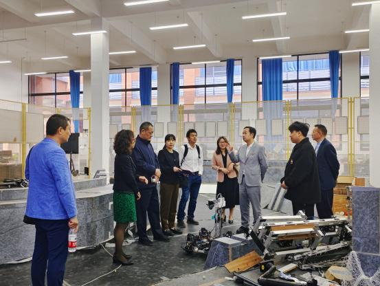 交流结束后,参会领导和专家一行在学校领导陪同下参观了学校机甲大师基地。机甲大师基地教师向代表们详细介绍了机甲大师基地的建设进展、设施配备以及未来规划,并展示了基地在科技创新和工程实践教育等方面所取得的成果。