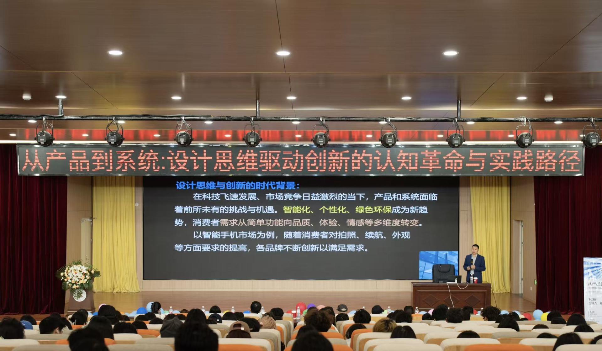 讲座中,葛老师依托深厚的学术素养与行业洞察,系统梳理了设计思维的核心要素,解析其演变历程,并逐步拆解创新实践路径。他结合丰富案例,提出应对挑战的策略,展望未来发展趋势,层层深入,为师生廓清设计创新的思路。葛老师摒弃空泛理论,以学生们熟悉的AI、耳机等产品为例,进行了生动而深刻的剖析。他指出,一款成功的耳机设计,已不仅是声学硬件的堆砌,更涉及降噪算法、佩戴感应、与移动设备及语音助手的无缝衔接,体现的是整个智能音频生态与用户体验的竞争。