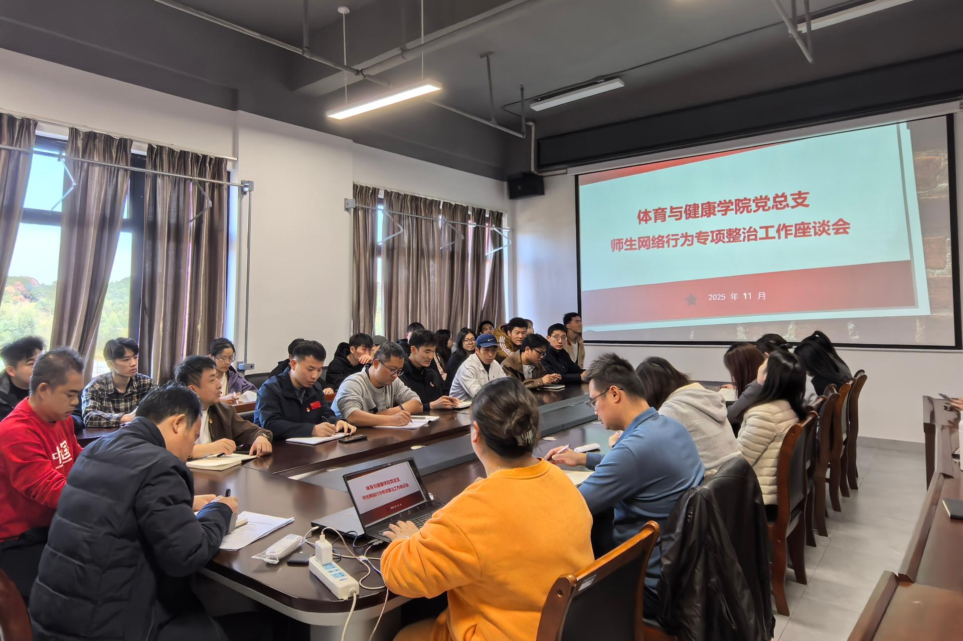为进一步规范全院师生网络行为,营造风清气正的网络环境,引导师生树立正确的网络价值观,切实维护学院良好形象与网络安全,11月20日,体育与健康学院党总支在行健楼205会议室召开师生网络行为专项整治座谈会。学院院长周勇以及全体师生党员参会,会议由学院党总支书记关永康主持。