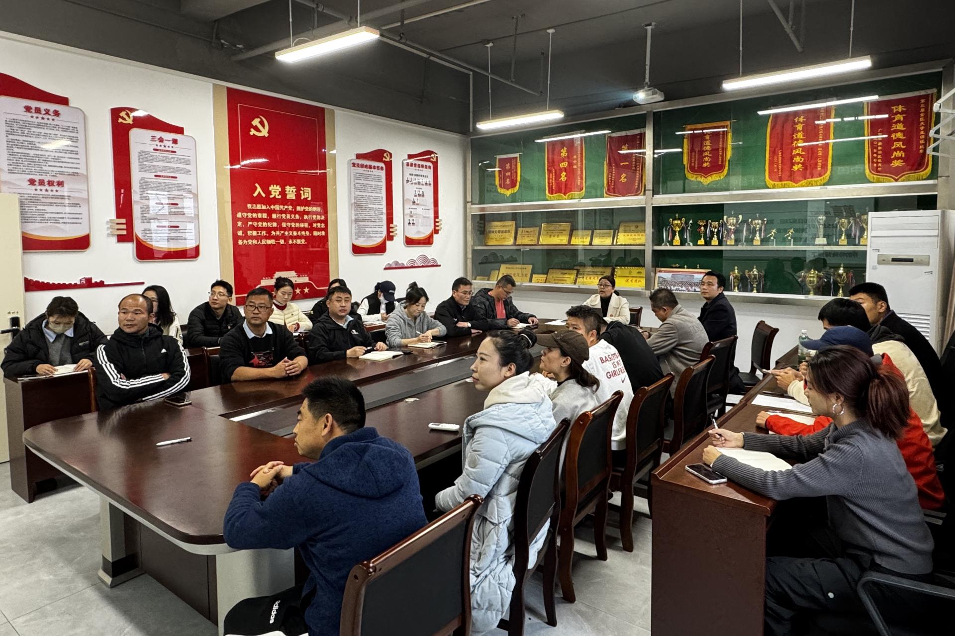 为深入学习贯彻党的二十届四中全会精神,引导全体教工党员赓续红色血脉、强化使命担当。12月12日,体育与健康学院教工党支部在行健楼205会议室开展“中国共产党人精神谱系”主题宣讲会。本次宣讲会邀请了马克思主义学院莫丽梅老师主讲,学院院长周勇、学院党总支书记关永康以及教工党支部全体党员参会,本次会议由教工党支部书记刘卓主持。