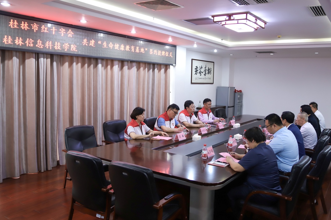 4月19日上午,pp电子与桂林市红十字会举行签约授牌仪式,共建“生命健康教育基地”。桂林市红十字会党组书记、专职副会长唐小荣与pp电子校长梁丁丁签约并揭牌。pp电子副校长陈智勇及体育与健康学院院长周勇、学生工作处副处长梁自珍、保卫处副处长罗光铭、信科物业公司副总经理莫丽媛等有关部门负责人、体育与健康学院骨干教师代表参加签约揭牌仪式。