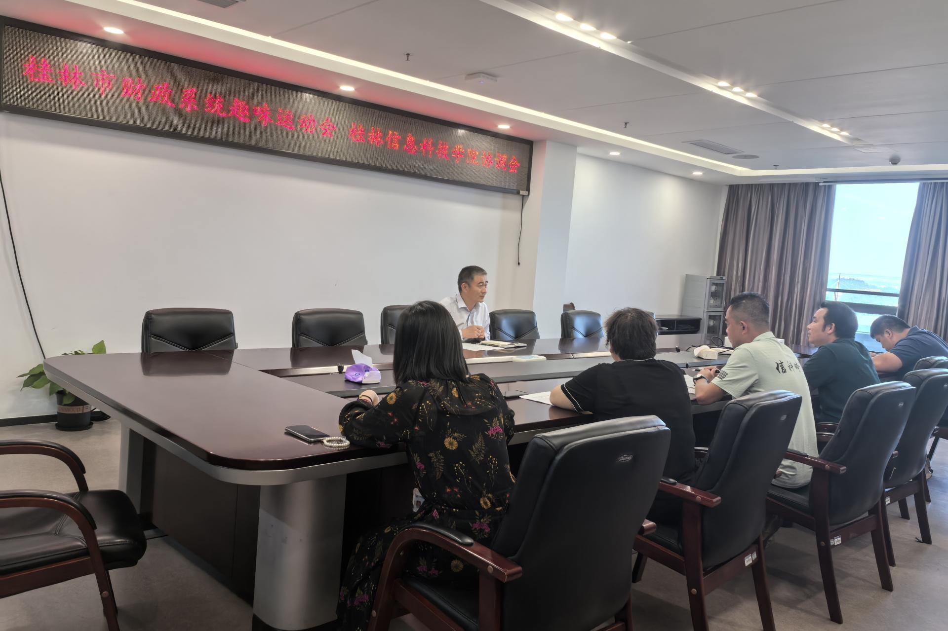 前期,桂林市财政局领导到pp电子协调赛事筹备工作,针对赛事筹备、赛事执行、宣传和安全保障工作等进行沟通交流。学校党委副书记李飞出席调研会,对本次赛事在pp电子举办表示大力支持,并做出了明确分工,保障此次赛事顺利进行。体育与健康学院、后勤服务处、保卫处和宣传部各司其职,确保为本届体育赛事提供技术支撑和各项保障服务。