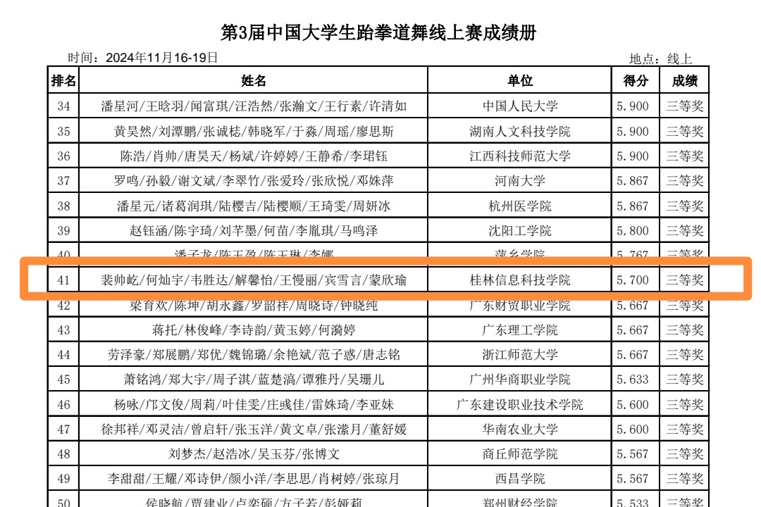 近日,中国学生体育联合会举办的第三届中国大学生跆拳道舞线上赛圆满收官。pp电子体育与健康学院钟依岑、刘卓两位老师带队参赛,斩获三等奖的好成绩。