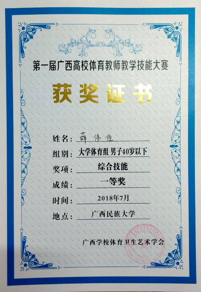 广西高校教学技能大赛-运动技能一等奖