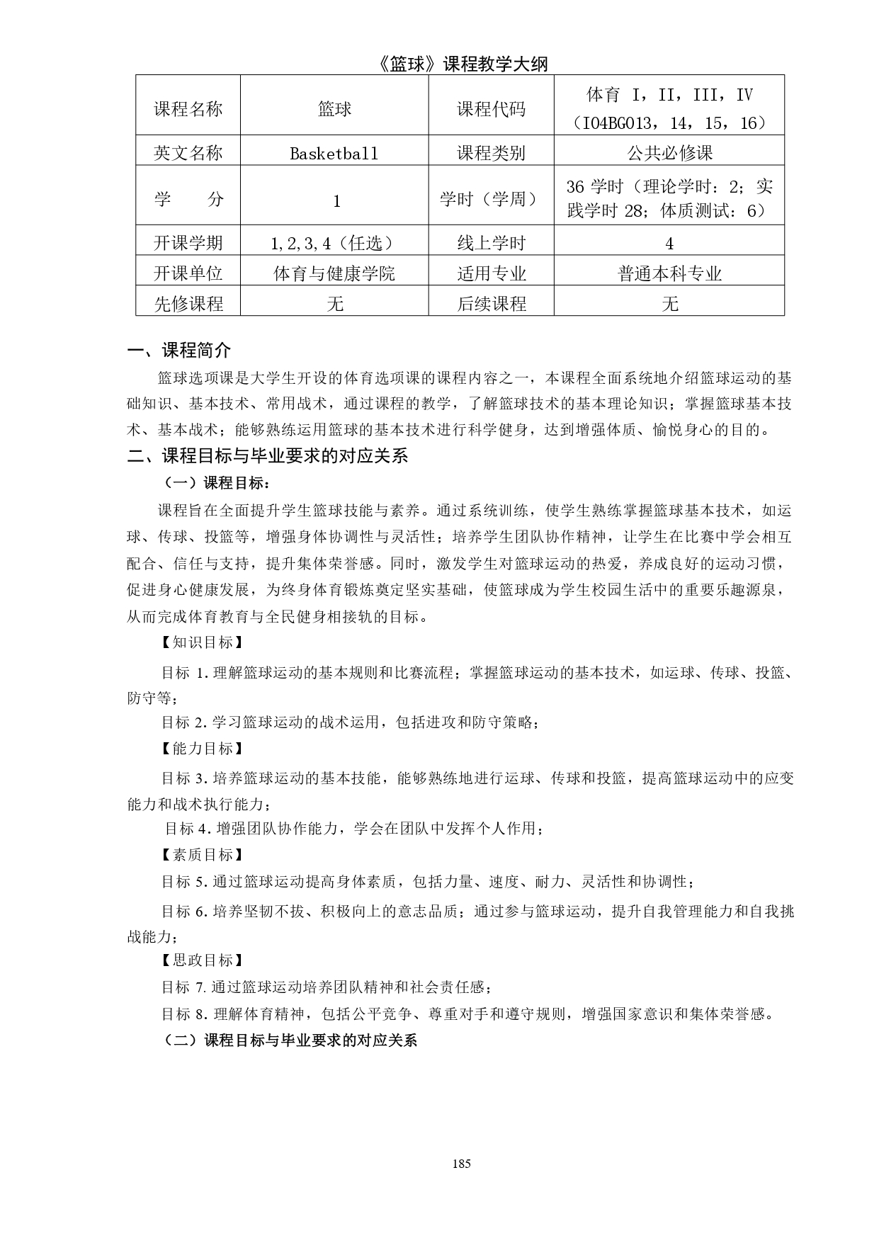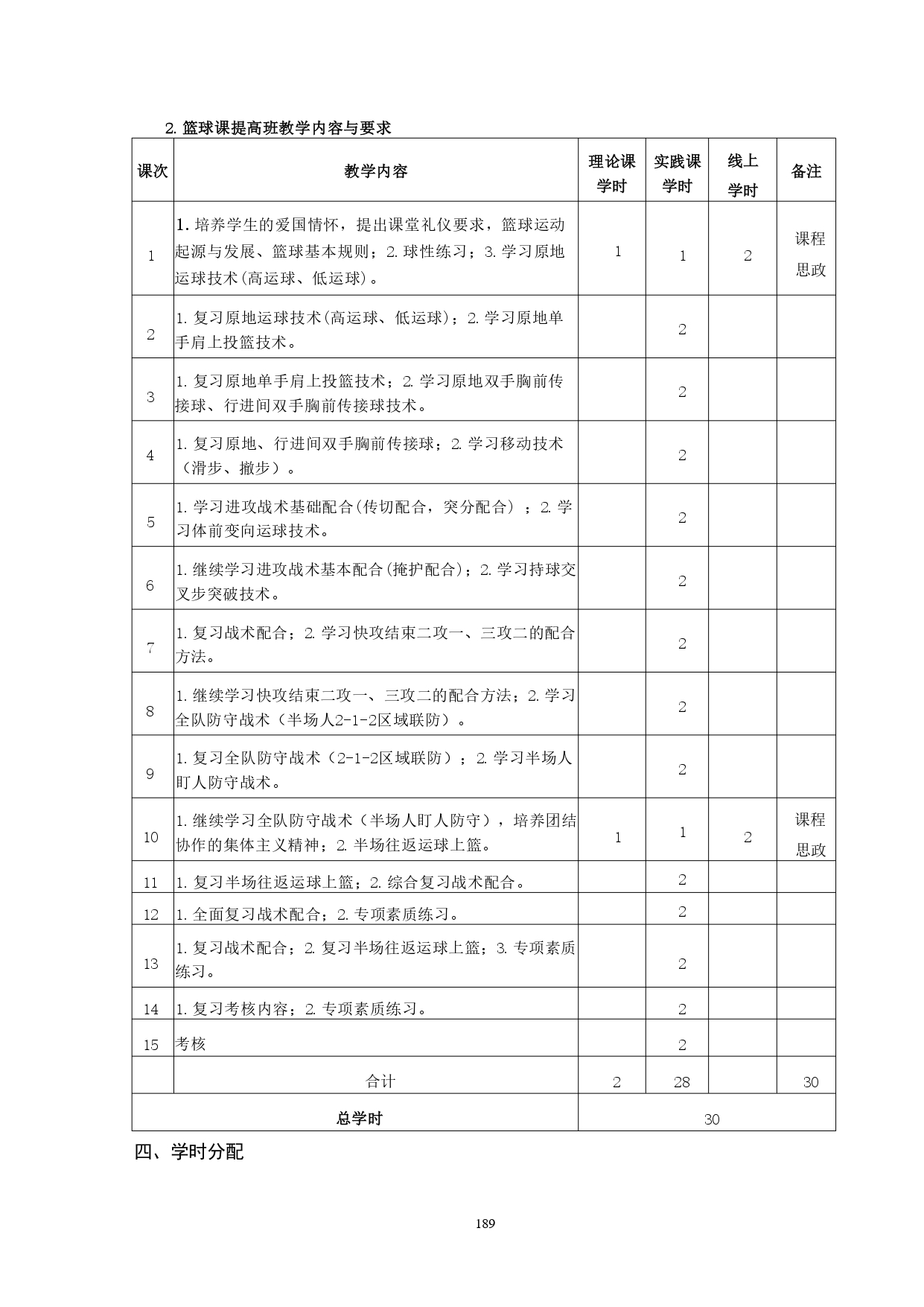 篮球教学大纲
