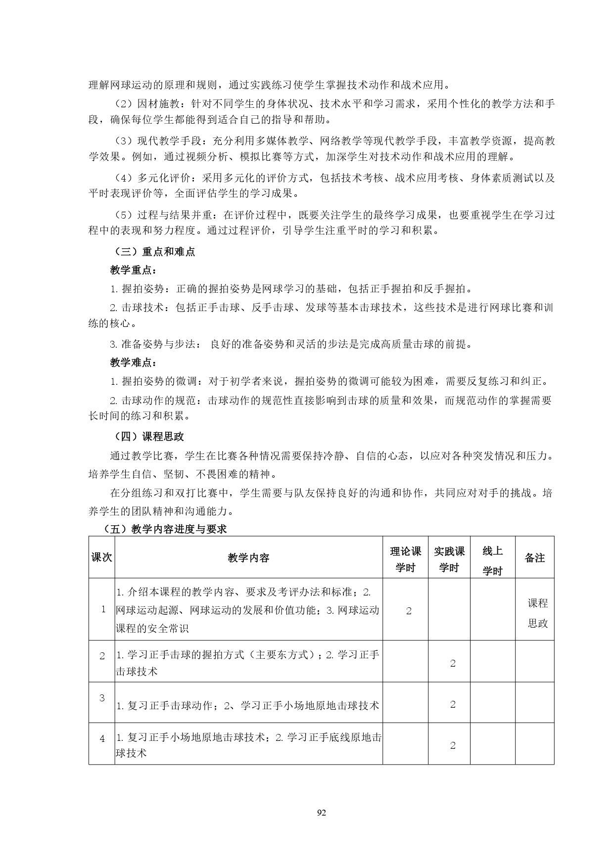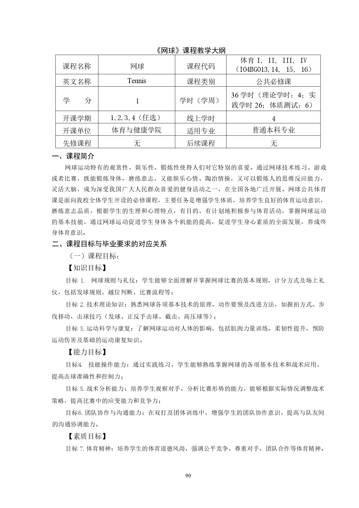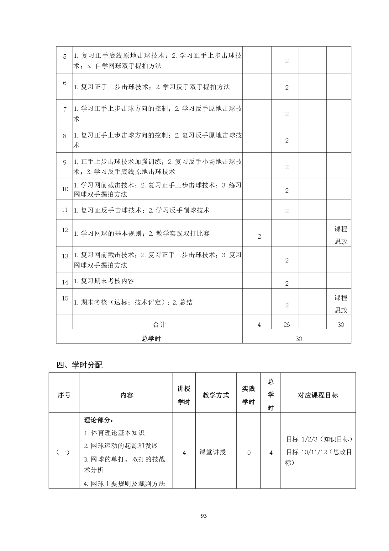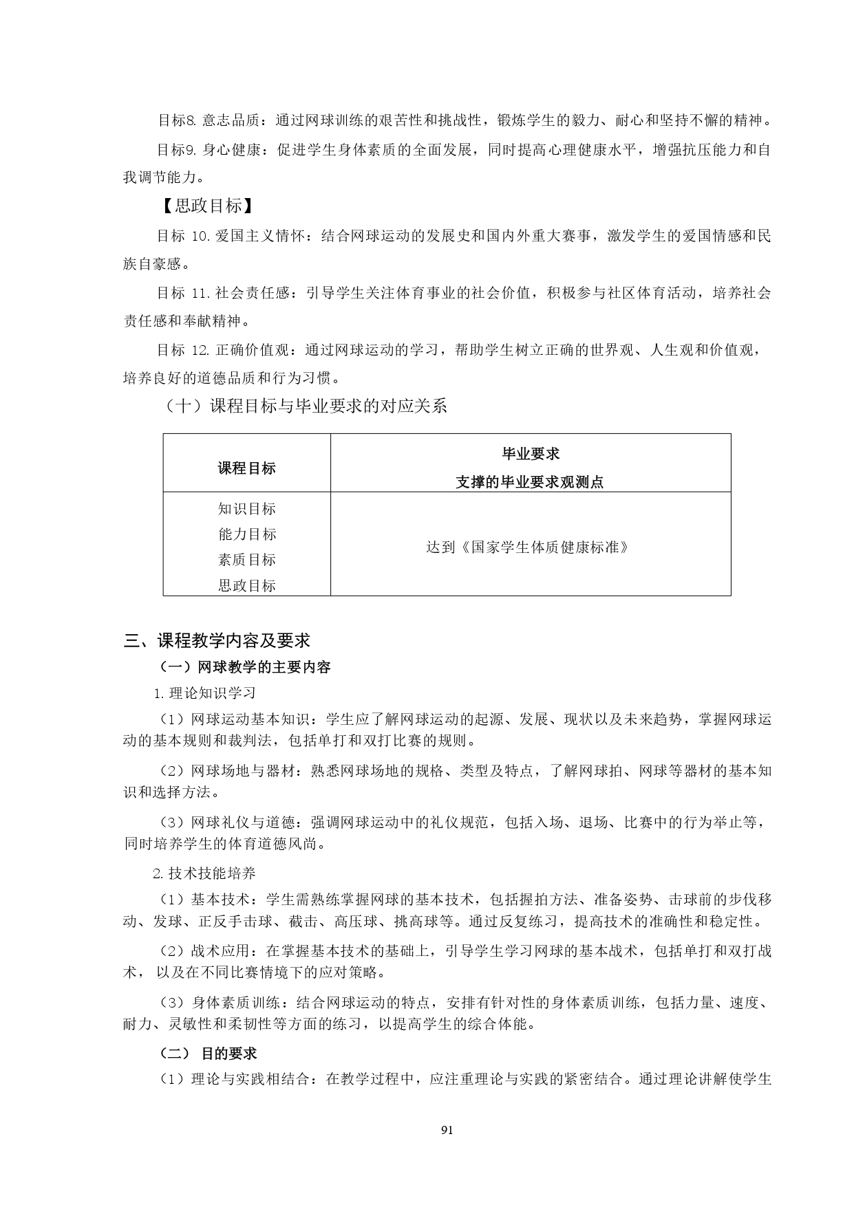 网球教学大纲