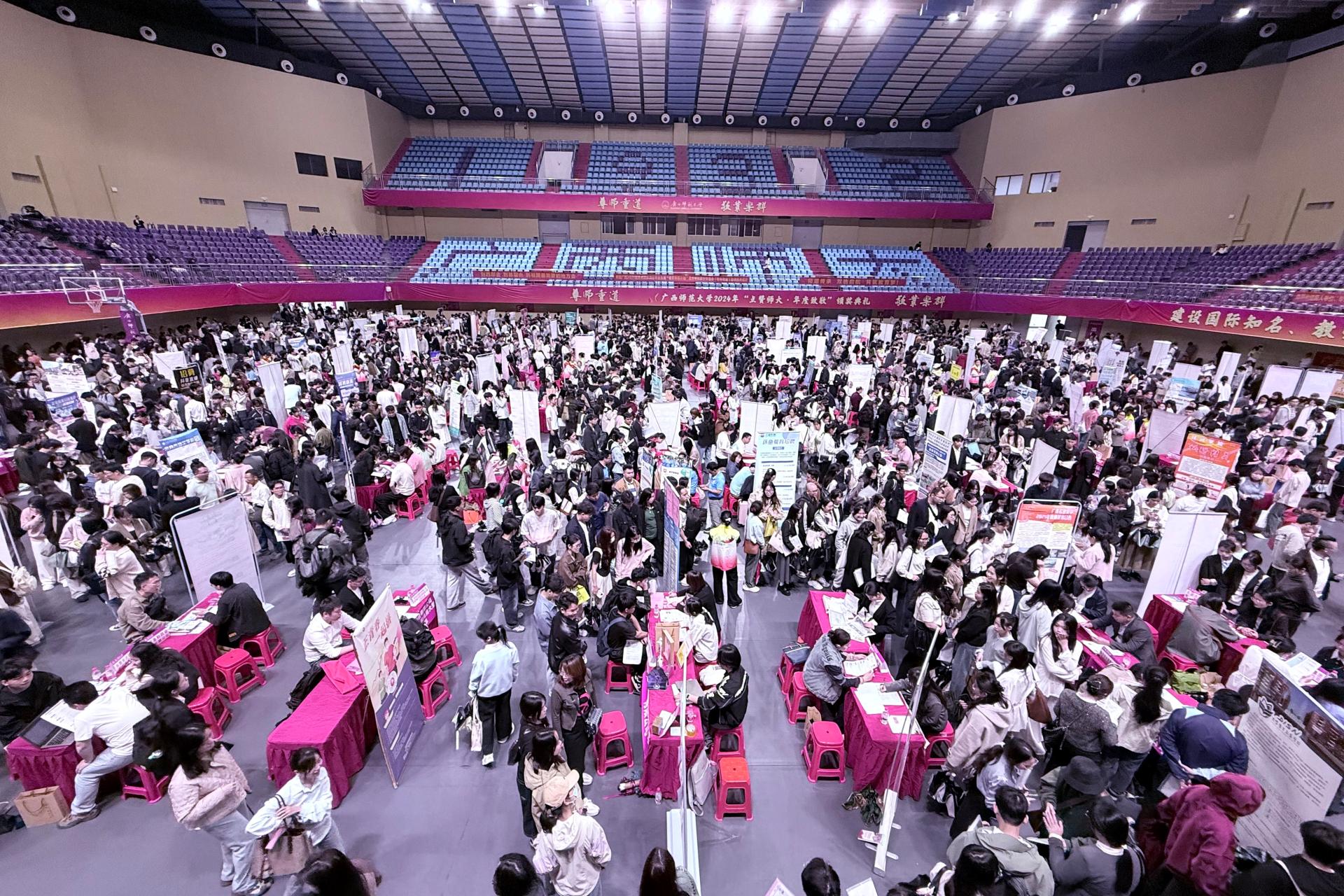 为切实推进毕业生就业工作,提升就业质量,4月12 日,毕业班辅导员携 2025 届学生赴广西师范大学雁山校区,参加广西2025届重点群体毕业生就业精准帮扶双选会(桂林专场)暨“宏志助航计划”专场招聘会。