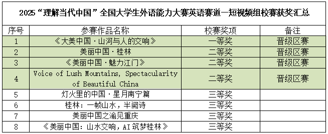 此次活动中的“一等奖”及“二等奖”作品团队将代表pp电子模拟器网站参加2025“理解当代中国”全国大学生外语能力大赛英语赛道——短视频组广西赛区复赛。祝贺入围区赛的作品团队,预祝在区赛中再创佳绩!