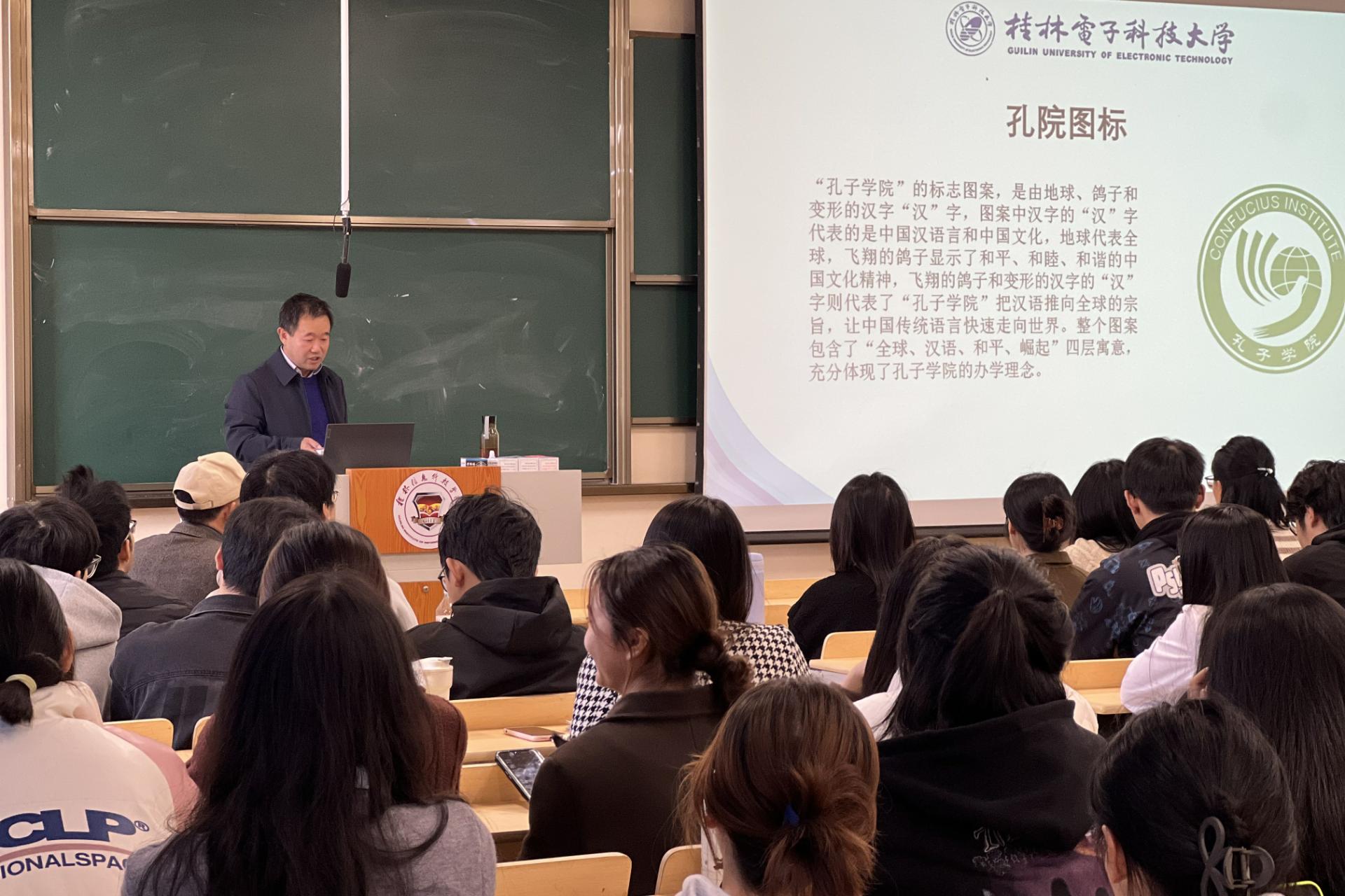 为进一步提升英语专业师生对国际中文教育事业的认知,外贸与外语学院于11月29日在敏思楼D207教室成功举办《孔院教师的使命与素养》和《迈向汉语国际教育的进阶之路》专题讲座。讲座由外贸与外语学院院长王家年教授主持,特邀桂林电子科技大学秦恺教授与张林教授为主讲嘉宾,英语专业教研室全体教师、2021级申报国际中文教育志愿者的学生、2022级及2024级英语专业学生参加。