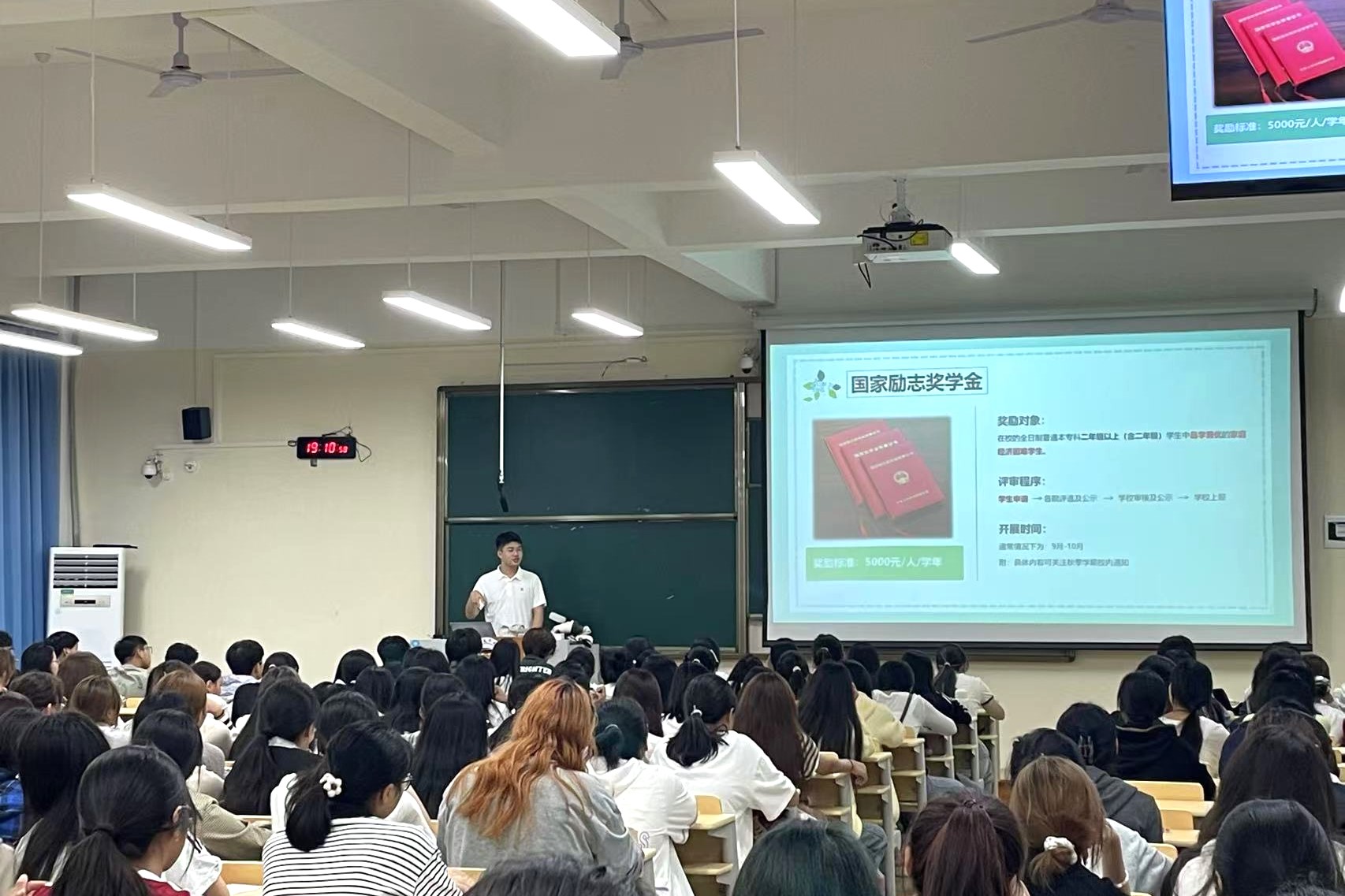 会上,刘冲、罗吉凤分别为同学们介绍了“国家现行资助政策有哪些?”接着,从“奖、助、补、贷、勤”五个方面进行了具体讲解。“奖”涵盖国家奖学金、国家励志奖学金、自治区人民政府奖学金和筑梦奖学金;“助”包括国家助学金和兵役助学金;“补”为困难补助(学校);“贷”是生源地助学贷款;“勤”指勤工助学(学校)。两位老师详细阐述了各资助政策的补助对象、补助标准、申请所需材料以及开展时间等内容。此外,两位老师还大力宣传了资助政策的重要意义,并回应学生提问。
