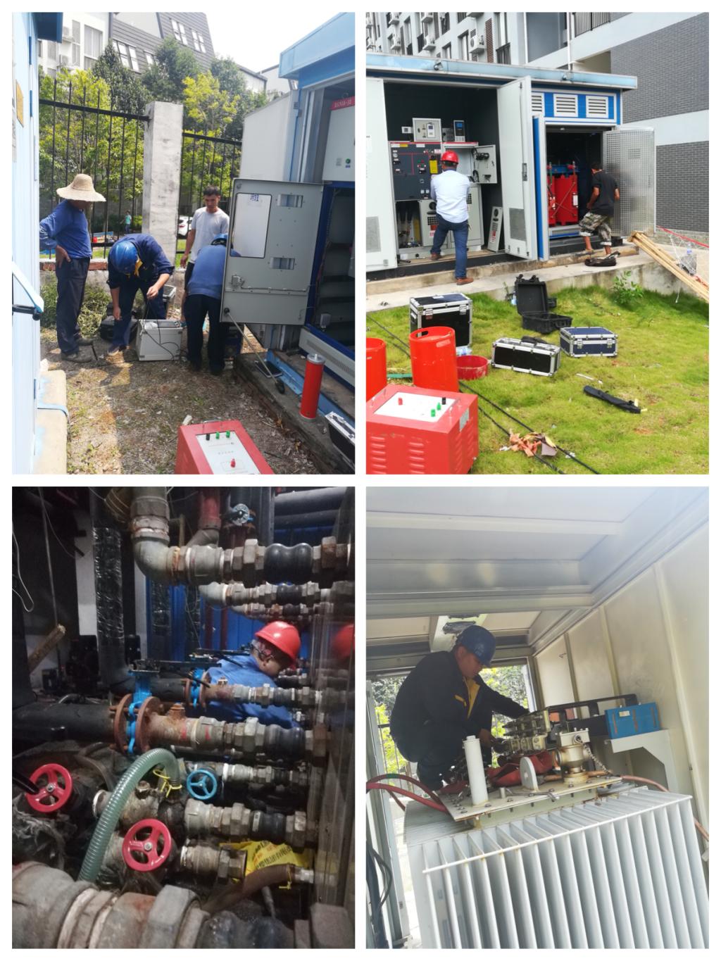 常规工作一方面要做好教学楼开水器消毒、清洗,公共教室课桌椅、门锁检修工作,检修食堂线路和设施设备,确保设备正常运转,食堂正常供餐。另一方面要对大型设备设施进行维护保养,夏季的高温对各配电房、发电机房、地热设备维修保养也是一个巨大考验,电力设备散发出来的温度把整个配电房变成了一个大“烤箱”。如此的高温下,员工们要检修、保养设备,每一个步骤都不敢掉以轻心,为的只是保证在高温天气下机电设备能正常运行。