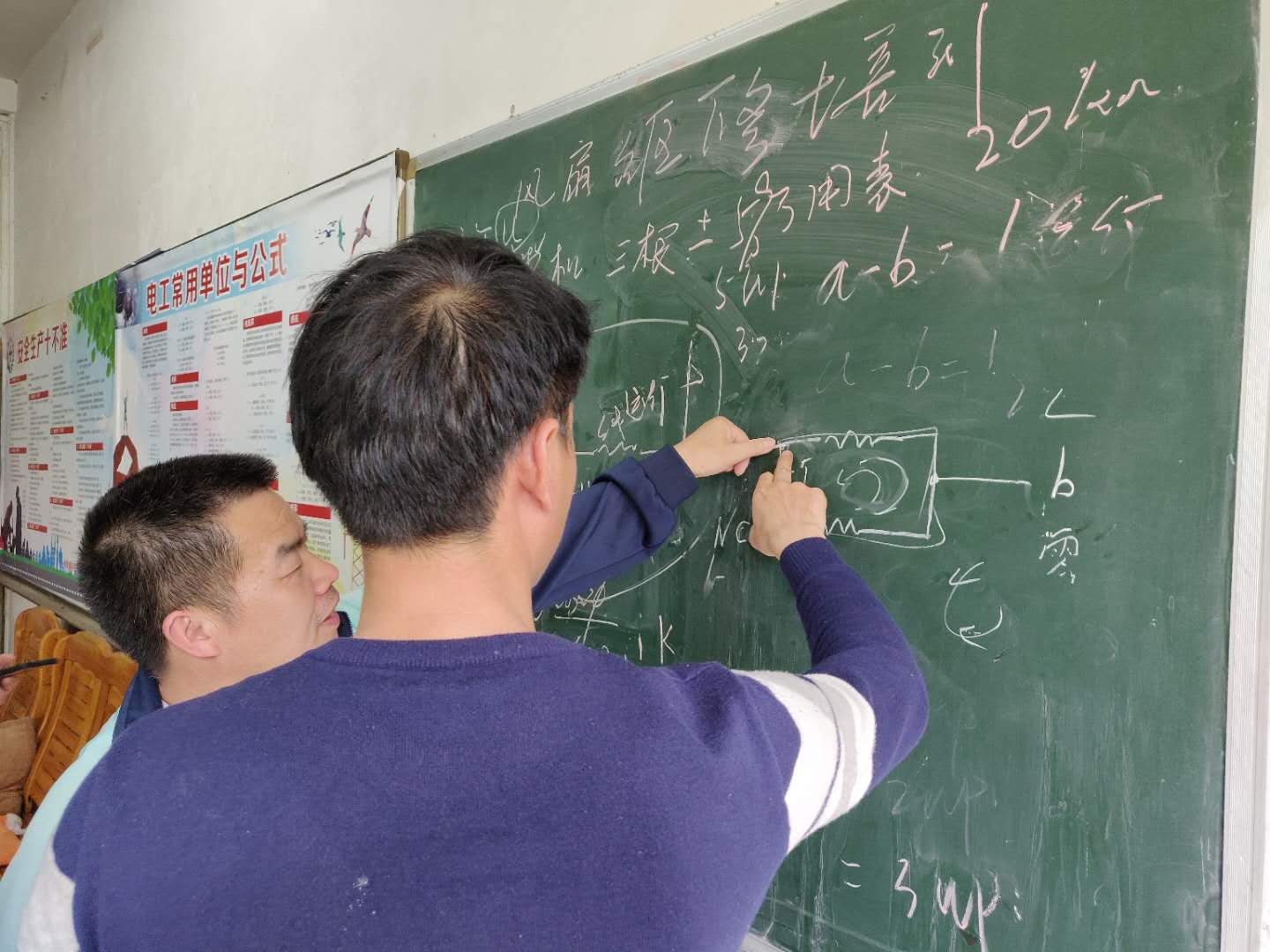 培训通过理论联系实际,先从理论着手,通过讲解风扇电路图的形式,让受训人员了解到风扇运行的原理。随后示范如何用万用表测量风扇电容的接入点,以及造成风扇反转的电路接法。讲解结束后,员工们围坐一团,亲自动手操作,将学习到的知识现场进行实践,并相互讨论,做到真正理解和熟练掌握所学的知识。