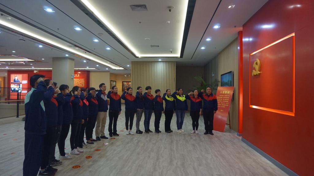 学习中,宋书记强调学习教育要不折不扣的开展,取得实际效果,不能流于形式。通过湘江战役等生死存亡的战役,学会面对困难勇于奋进,面对责任勇于担当,把革命先烈不怕苦不怕累的精神融入到工作当中,牢记后勤“三服务、两育人”的初心,不忘“三满意”的工作使命,为了美好的明天而奋斗。最后,支部全体党员在展厅内重温入党誓词,面对党旗庄严宣誓。