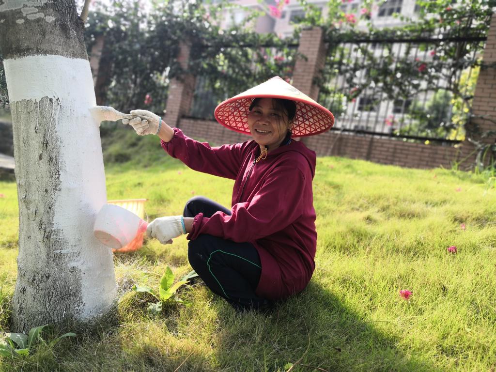 为保证涂白工作质量,绿化师傅们精心对涂白剂进行搅拌、配比,并统一涂白高度、涂层厚度均匀,达到美观一致的效果,努力做到不浪费浆料,涂白后的树木成为校园冬季一道独特亮丽的风景线。