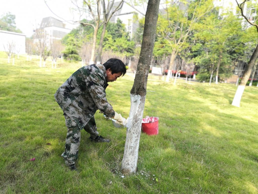 随着天气转冷,植物开始进入冬季休眠期,为有效预防树木安全越冬及病虫害侵袭。近日,物业服务中心展开校园绿化树木冬季涂白养护,预计此项工作将在二周内完成。