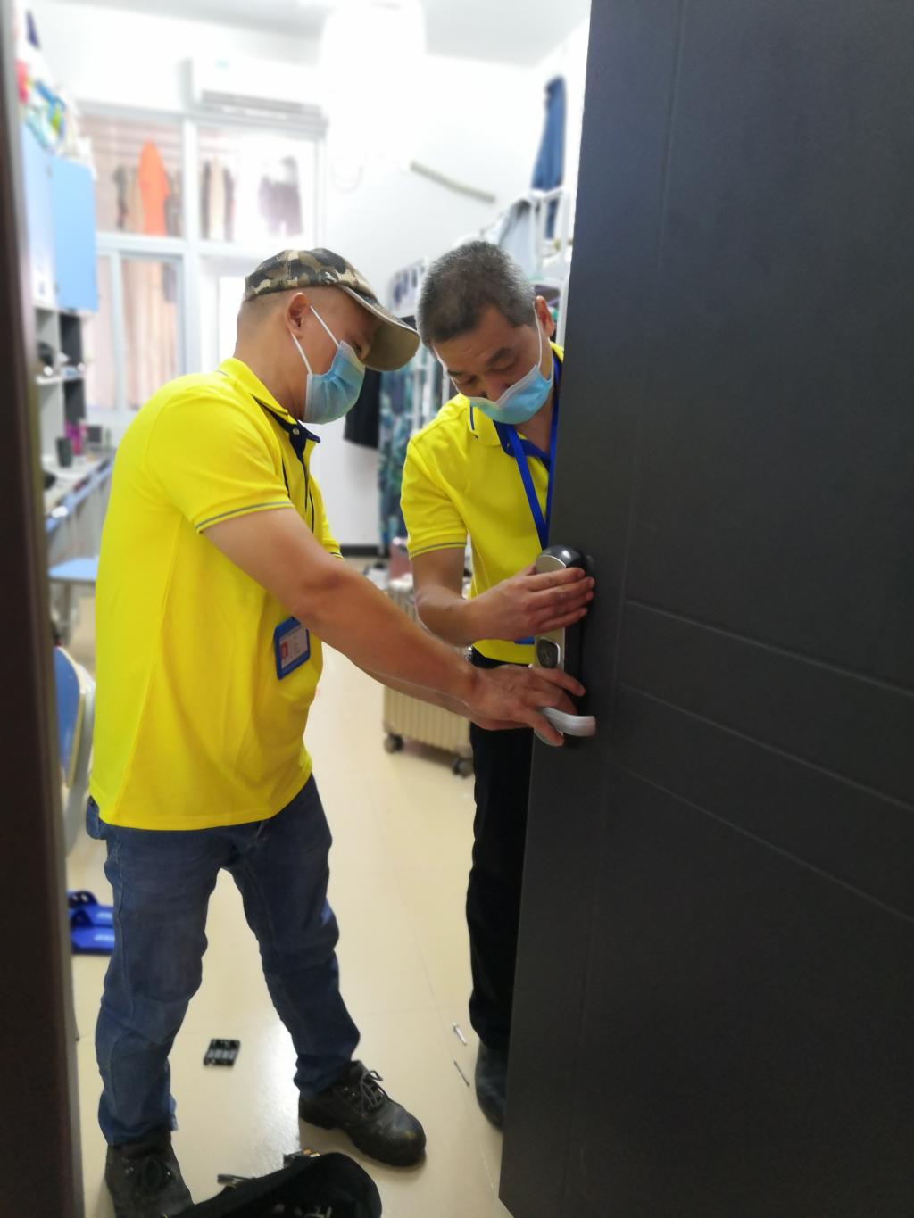 维修师傅们顶着炎炎烈日、坚守岗位,维修更换后山篮球场、足球场泛光灯28盏,更换生活区照明灯120,为全校921个给、排水井盖刷标识漆,完成557间新生宿舍维修及空调、风扇的清洗,并配合、跟踪校内箱变、热水机组、中央空调等大型设备维保工作,为保障开学后各项工作开展做好准备。