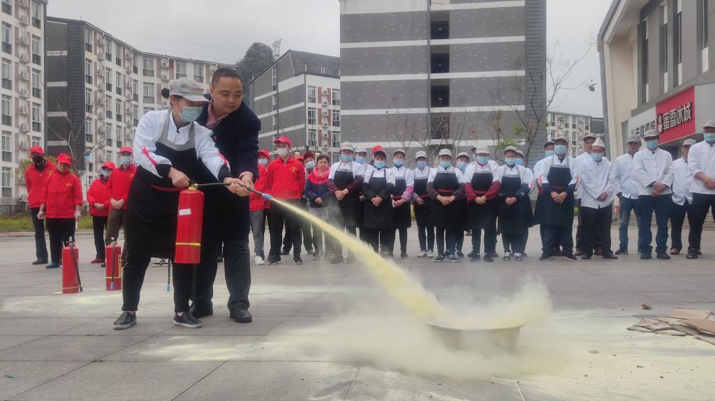 3月4日,饮食服务中心组织全体员工及公司新员工在二食堂广场开展消防演练培训,共162人参加,由二食堂班组长万金辉主讲。