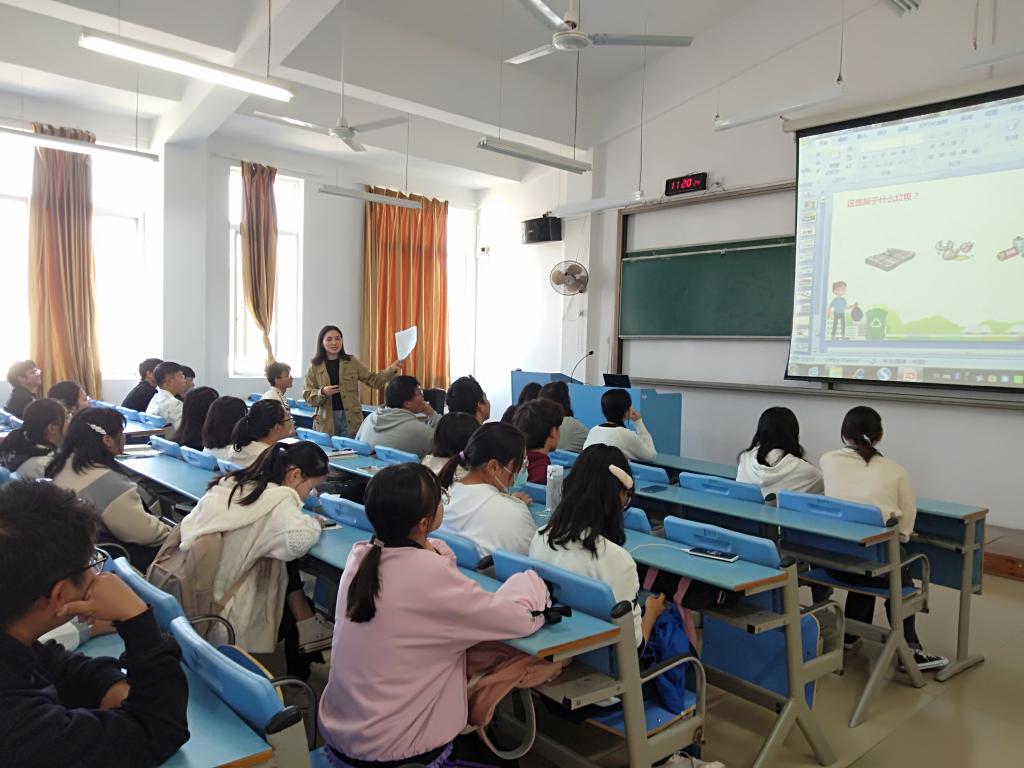 培训主要围绕“垃圾的危害、实行垃圾分类的意义、分类标准、如何实践垃圾分类”四个环节进行,重点强调了校园中常见容易混淆弄错的垃圾、有害垃圾怎么分,设置提问、互动环节,其中全新概念的“小猪丢丢”垃圾分类法吸引学生们的关注。通过培训用简明扼要的方式将复杂的干垃圾、湿垃圾、可回收、有毒垃圾,替换成猪能吃、猪不吃不会的、卖钱的、猪杀手对应的垃圾分类专用名词,为更好的引导学生垃圾“分好类、分对类”。