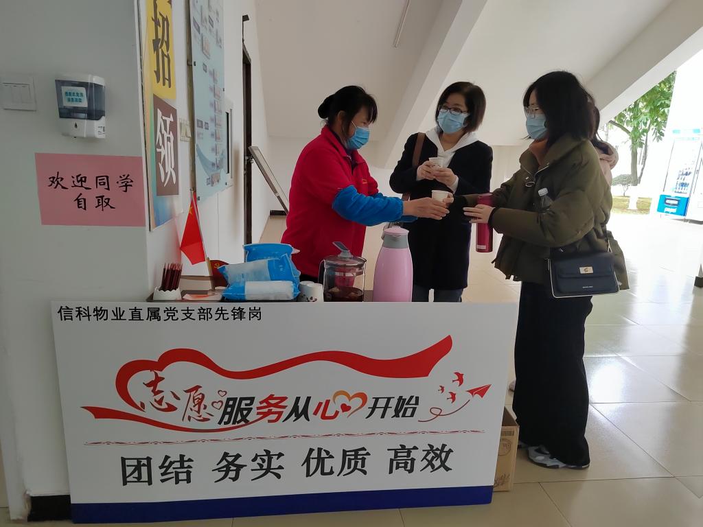 据悉,考试当天,信科物业各部门负责人全员在岗、坚守一线,并设立“支部党员先锋岗”,为考生、监考老师免费提供热茶水、口罩、考试用品及物品临时存放等服务,得到了广大师生“热茶暖身、服务更暧心”的高度赞许。