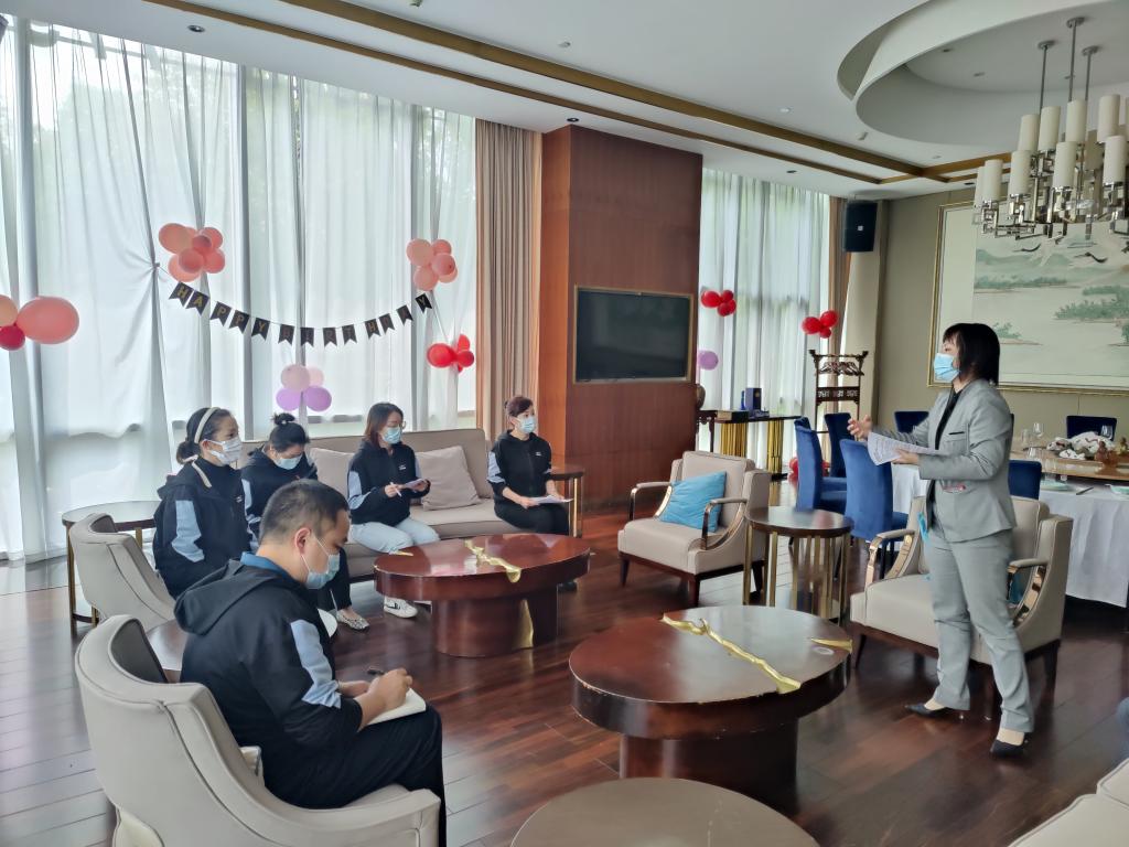 为提升后勤员工在包厢接待工作中的服务质量,4月21日下午,总经办经理奉燕带领公司管理人员6人,到漓江勝宴餐厅参加接待礼仪培训学习。