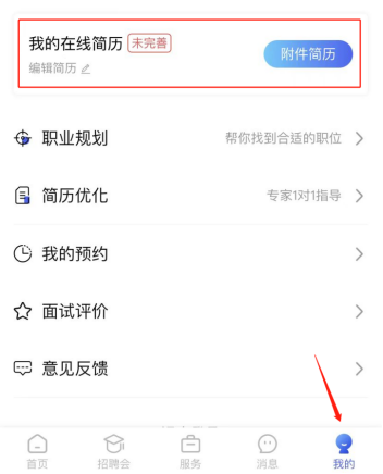 二、进入招聘会场,招聘会开始前可完善个人在线简历,同时也可上传附件简历。