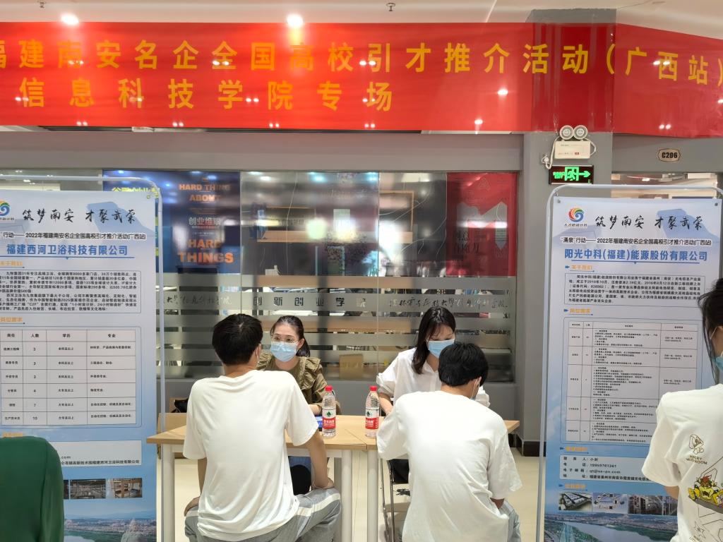 “政校企”三方联动,开启就业新篇。近日,pp电子联合福建省南安市人力资源社会保障局在创新创业学院举办“涌泉行动”——2022年福建南安名企高校引才推介活动。学校副校长、党委副书记、纪委书记唐步洲现场走访企业,招生就业处、二级学院相关负责人以及毕业班辅导员陪同走访。