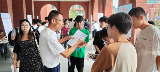 校领导在招聘会现场指导毕业生优化简历
