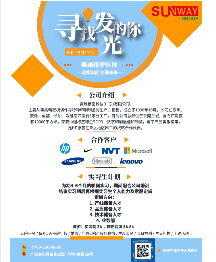 赛维精密科技(广东)有限公司10月28日来校招聘