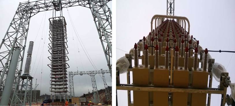 ± 800kV直流输电工程(普洱、江门)悬吊式直流滤波电容器装置主体完成安装,为首次研制,填补国内空白。