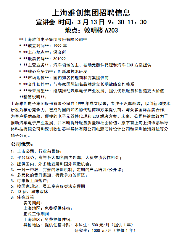上海雅创电子集团招聘信息