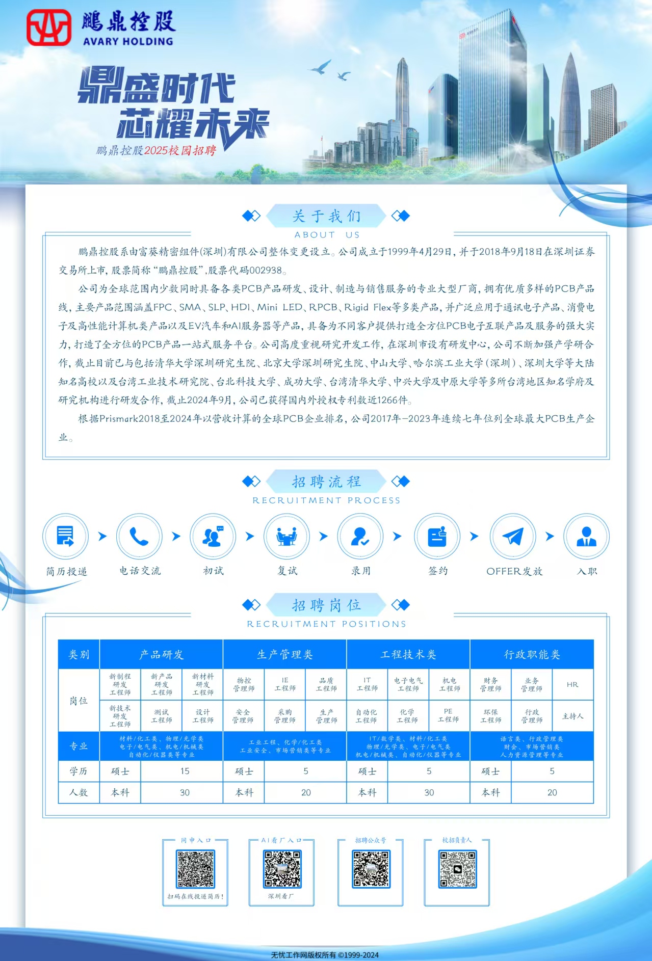 鹏鼎控股(深圳)股份有限公司10月25日14:00来校招聘(地点:一站式服务中心)