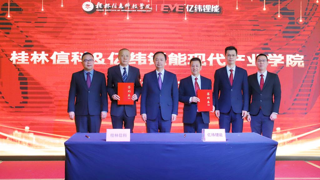 惠州亿纬锂能股份有限公司黄国民副总裁在致辞中表示,很荣幸参加“桂林信科亿纬锂能现代产业学院”的校企签约仪式,亿纬锂能与桂林信科渊源已久,从2016年开始,公司和学校积极探索“3+1”的校企联合培养模式,为公司培养了大量的应用型工程技术人才。桂林信科亿纬锂能现代产业学院的成立,既提升了人才培养的高度,也拓宽了人才培养的广度,企校双方可充分发挥各自优势,更好的为企业培养高素质、高技能的应用型工程技术人才。希望现代产业学院的成立能进一步培育和吸引更多优秀毕业生来亿纬锂能实习、实训和就业,为学生自身生涯发展提供更广阔的空间,为推动公司更好的服务中国新能源产业发展注入新活力。