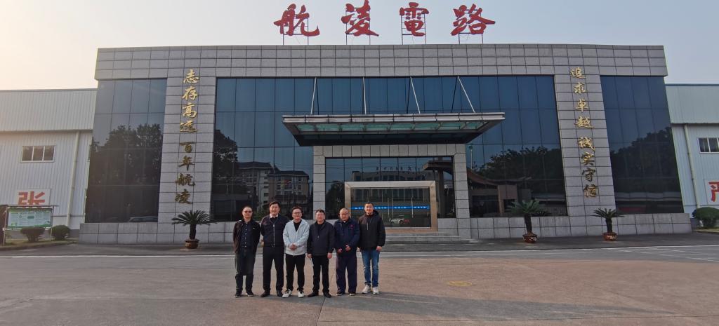 (右三重庆永川重庆市永川区工商业联合会主席谢绍刚、左三重庆永川区河南商会会长皮涛、右二重庆航凌电路板有限公司法人/董事长赵勇)